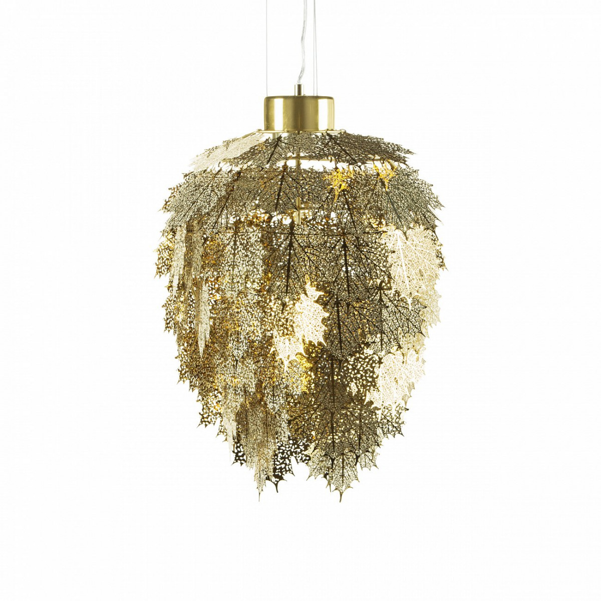 Подвесной светильник Maple диаметр 34 сразу вызывает желание рассмотреть его более детально. Словно составленный из хрупких золотых серебряных снежинок, он напоминает изящное ювелирное украшение. Неудивительно, ведь его создатель — известный дизайнер Брайан Расмуссен.В