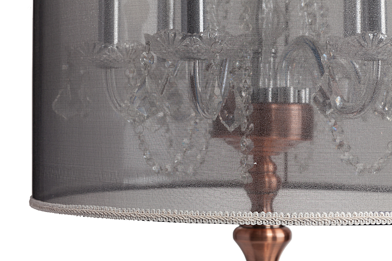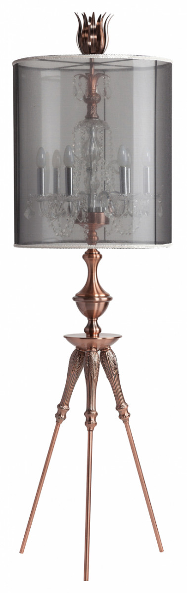 Изысканный напольный светильник TRIPTONE станет ни только отличным источником дополнительного освещения, но и эффектным украшением, подчеркивающим индивидуальность вашего помещения. Одно из основных преимуществ светильника заключается в его мобильности — он легко переставляется в нужное место.Роскошный напольный светильник на трех металлических ножках медного цвета с искусной резьбой. Лампы с хрустальными гирляндами подвесок таинственно скрыты за полупрозрачным тканевым абажуром темного цвета. Торшер дарит мягкий, приятный для глаз и, в то же время, достаточно яркий свет. Такой светильник особенно эффектно сочетается с винтажными предметами в помещении, станет ярким акцентом в интерьере, придаст ему красоту и особый шарм. Поставьте его возле своего любимого кресла, в нем будет прекрасно устроиться с книгой — мягкий свет позволит вам наслаждаться чтением в комфортной для глаз обстановке. Предназначен для использования со светодиодными лампами.